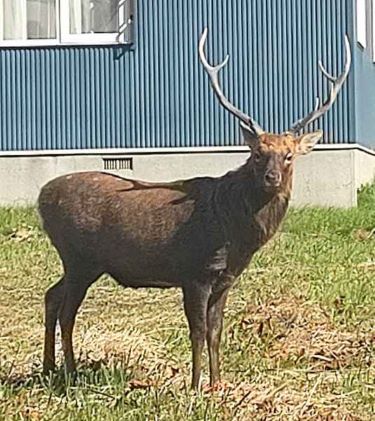しか~!シカ~!鹿~!・・・本日、お昼頃より所用にて壮瞥方面でした。ちょっと遠回りして登別温泉街へ!お土産物屋さんがある観光街を車でゆっくり走っておりましたら、人混みが真っ二つに分かれ、道路のど真ん中から現れたのは、立派な角を纏った、どでかい牡鹿!こちらへ向かってのっしのっしと歩いて来ました。当然車は停車。先頭車は店主!目の前から、真横をドアミラーが触れるくらいの近くを通っていきました。目が合って(熊とは逆?)気分を損ねドアでも突かれたら、ドアミラーぐらい一撃で吹っ飛びそうなド迫力です!周りにいる観光客もどうすることも出来ず、スマホを向けているくらいでした。あれが常連さんなのか、珍しいのかは、分かりませんが、とにかく威厳に満ちた鹿でした!