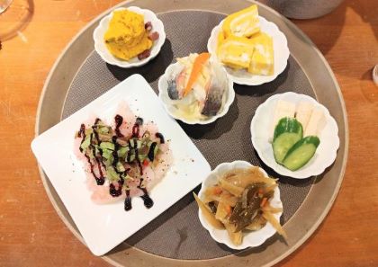ナナツモリ ブラン・ド・ノワールとクリスチャンビネール シ・ローズがニシン漬け、カボチャのサラダ、漬け豆腐(チーズのよう)に、全く同相性を見せたのが不思議でした!ボールナールのシャルドネはアルコール11.3度と冷涼感あるシャルドネでこれがまた美味い!ランセッカはナチュラルテイストが時間とともに美味しくなるのは、この蔵の白らしい!?メンティは最高のペティアンです!
